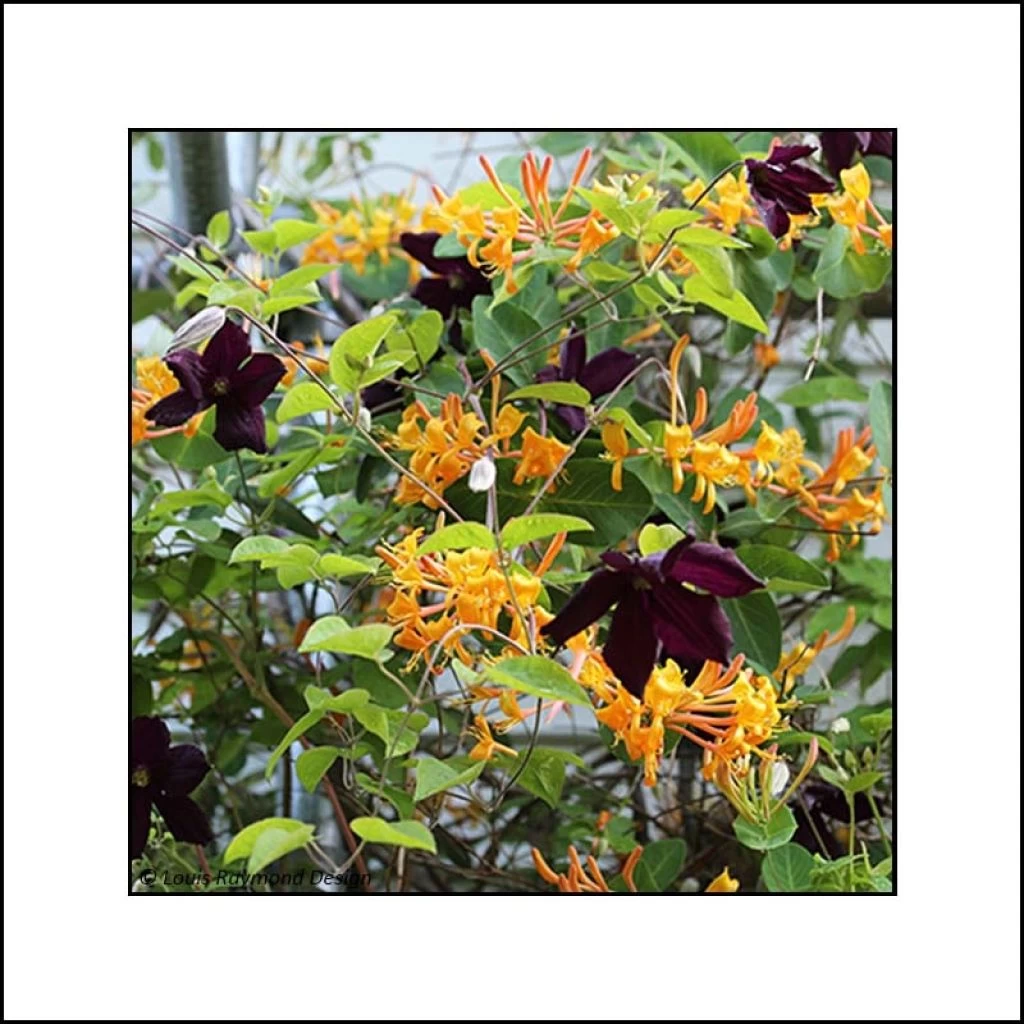 Ce duo est composé d’un plant de Clematis Romantika et d’un plant de Lonicera Mandarin.